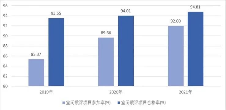 (二)诊疗支撑能力持续提升。一是合理用药水平不断提高。2021年,全国二级公立医院抗菌药物使用强度为35.02DDDs,较2020年下降1.30DDDs;抗菌药物使用强度超过40DDDs的综合医院比例较2020年下降3.83个百分点,浙江、江苏等省份的抗菌药物使用强度下降较快,湖南、吉林等省份连续多年抗菌药物使用强度相对较低。国家组织药品集中采购中选药品完成比例为92.34%,较2020年提升0.36个百分点;门诊患者基本药物处方占比和住院患者基本药物使用占比分别为50.88%和46.65%,较2020年提高0.34个和0.72个百分点,二级公立医院进一步落实优先配备使用基本药物政策要求。二是检查检验同质化水平稳步提高。2021年,90.53%的二级公立医院参加了所在省份临床检验中心组织的室间质量评价工作,省级室间质量评价临床检验项目参加率中位数为92.00%,合格率中位数为94.81%,较2020年分别提升2.34个和0.80个百分点(见图3),为有效推进医疗机构检查检验结果互通互认奠定了较好基础。上海、宁夏、天津等省份二级公立医院省级室间质量评价临床检验项目的参加率和合格率均位于全国前列,内蒙古、山东、广东等省份的参加率增长较快,宁夏、西藏、江西等省份的合格率增长较快。三是信息化建设和应用水平稳中有进。2021年,全国88.40%的二级公立医院参加了电子病历系统应用水平分级评价,平均级别达到2.60级,较2020年略有提高。其中,60.36%的二级公立医院的电子病历系统应用水平分级达到3级及以上,基本满足部门间数据交换的要求;二级公立医院中电子病历系统应用水平达到的最高级别为5级,占比约为0.3%,主要集中在山东、上海等省份。在信息化建设和应用方面,上海、浙江、河南、山东、贵州等省份基础较好,青海、山西、西藏等省份提升速度较快。