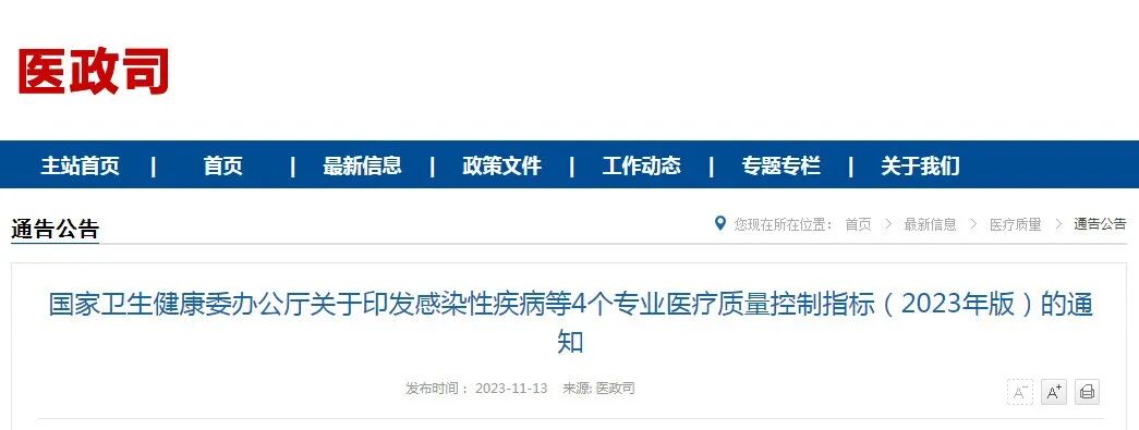 国家卫生健康委办公厅关于印发感染性疾病等4个专业医疗质量控制指标(2023年版)的通知