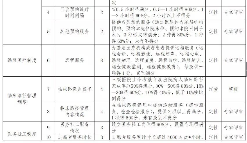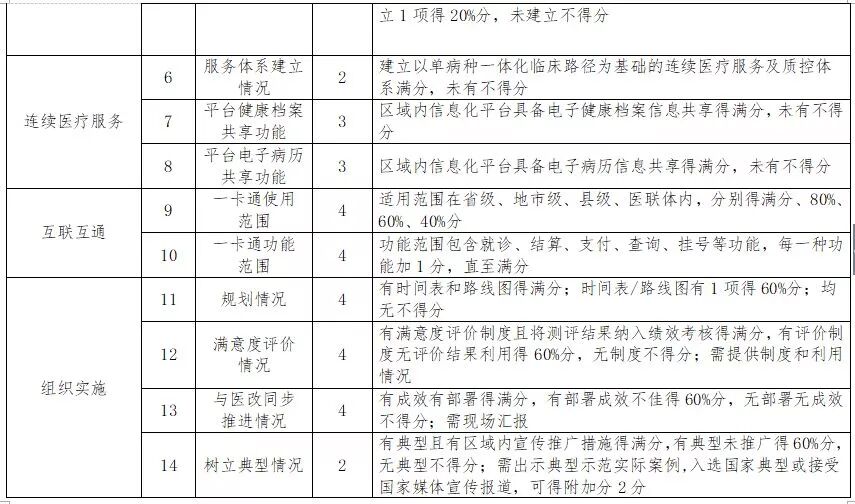 据了解,新一轮改善医疗服务三年行动计划重点落在医联体内,除了在三级医院主战场继续抓,二级医院,基层医疗服务机构,特别是县医院也将作为主要领域。另外,改善医疗服务新三年最大的一个特点将是走出医院围墙,体现全流程、全周期的一体化、连续性的医疗服务。这些都通过考核指标进行了明确,比如为基层医疗机构或者患者提供远程服务,如远程会诊、远程影像、远程超声等,每提供一项得1分,直至满分;提供基层卫生机构护理服务延伸服务,如老年护理、康复护理、安宁疗护、慢病管理的护理指导或培训进修等,提供3种以上得满分。在针对卫生健康行政部门的考核指标中,连续医疗服务是其中一项重要内容。比如《通知》指出,区域内信息化平台具备电子健康档案信息共享得满分,建立以单病种一体化临床路径为基础的连续医疗服务及质控体系得满分等。