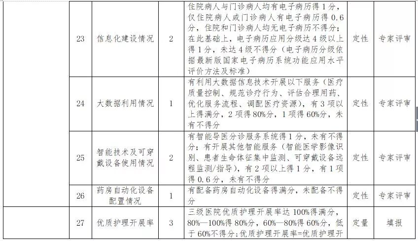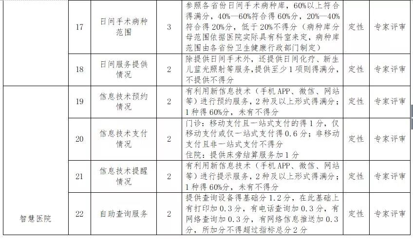 整个考核指标中,针对医疗机构的有39个具体指标,包括预约诊疗率、远程服务、临床路径完成率、临床路径管理内容情况、医务社工配备情况等。其中,智慧医院分数占比较大,达14%,考核指标包括大数据利用情况、智能技术及可穿戴设备使用情况等。在药学服务方面,《通知》指出,临床药师为门诊和住院患者提供个性化合理用药指导得3分,仅门诊或仅住院患者指导得1.8分;在此基础上,临床药师为签约慢性病用药指导得1分。另外,针对卫生健康行政部门制定的考核指标包括平台预约功能、检查结果互认、平台院前急救信息共享功能、一卡通使用范围、与医改同步推进情况等15个具体指标。