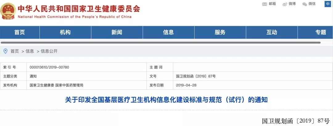 刚刚,国家卫生健康委和国家中医药管理局联合发布《关于印发全国基层医疗卫生机构信息化建设标准与规范(试行)的通知》(以下简称《建设标准与规范》),明确了基层医疗卫生机构(信息化建设的基本内容和要求。