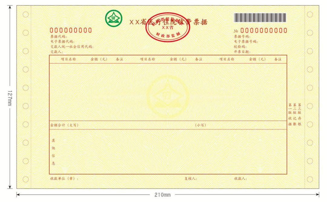 医疗住院收费票据(机打)式样