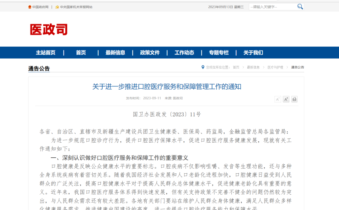 为进一步规范口腔诊疗行为,提升口腔医疗保障水平,促进口腔医疗服务健康发展,现就有关工作通知如下:
